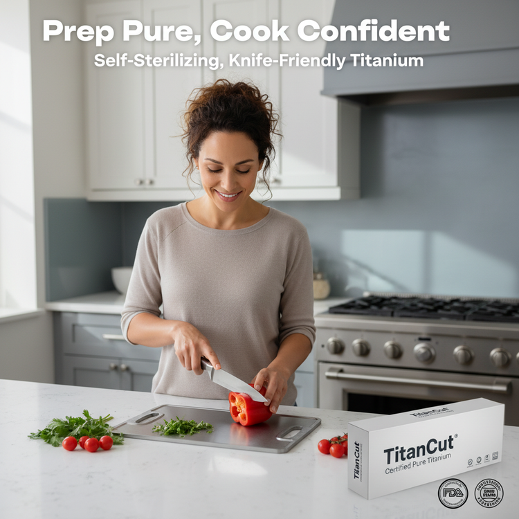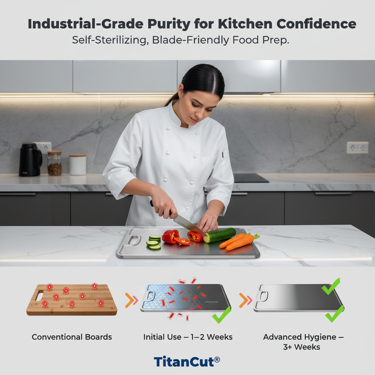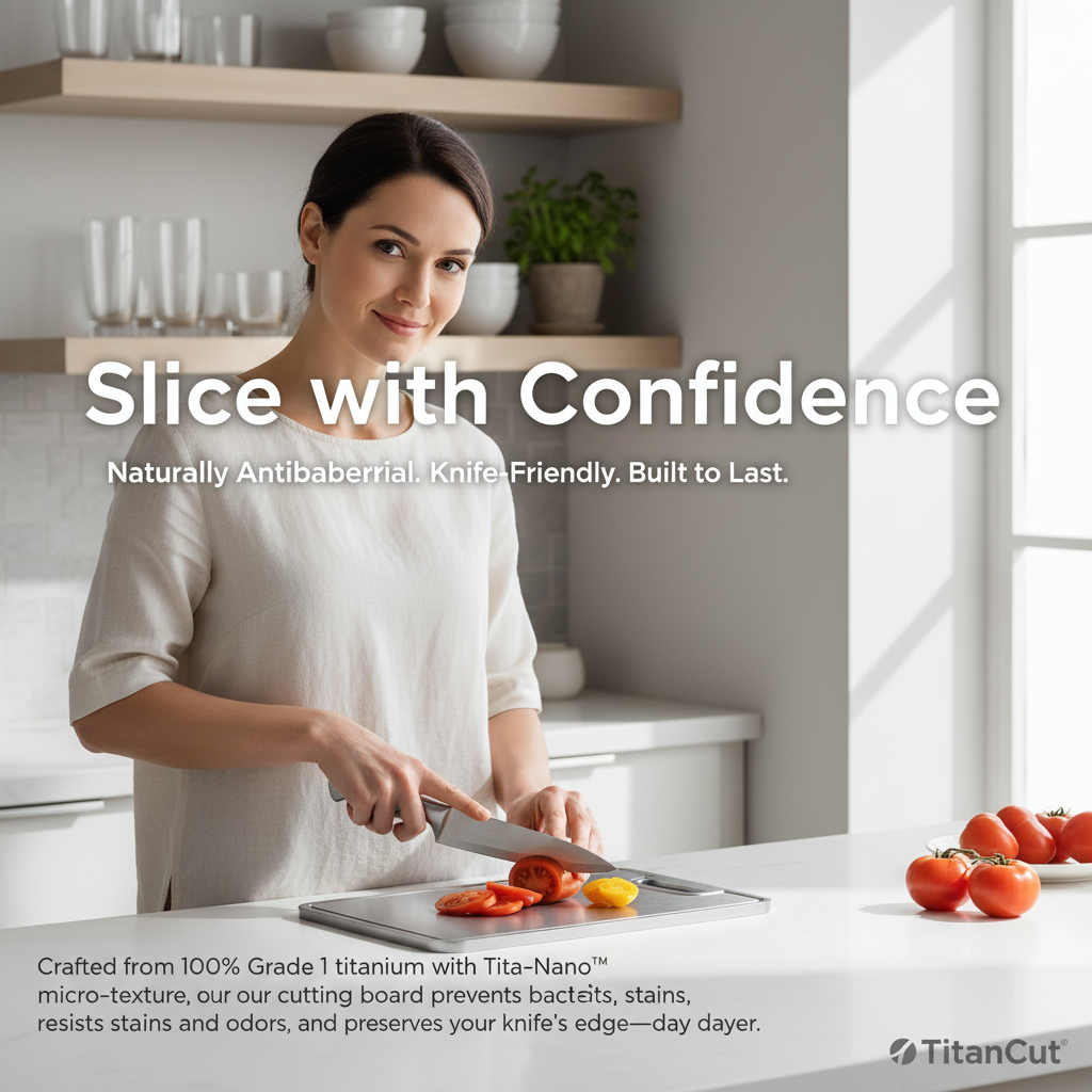 Transform your prep routine with a self-sterilizing, chemical-free surface built to last. Elevate flavor, safety, and style in every slice.